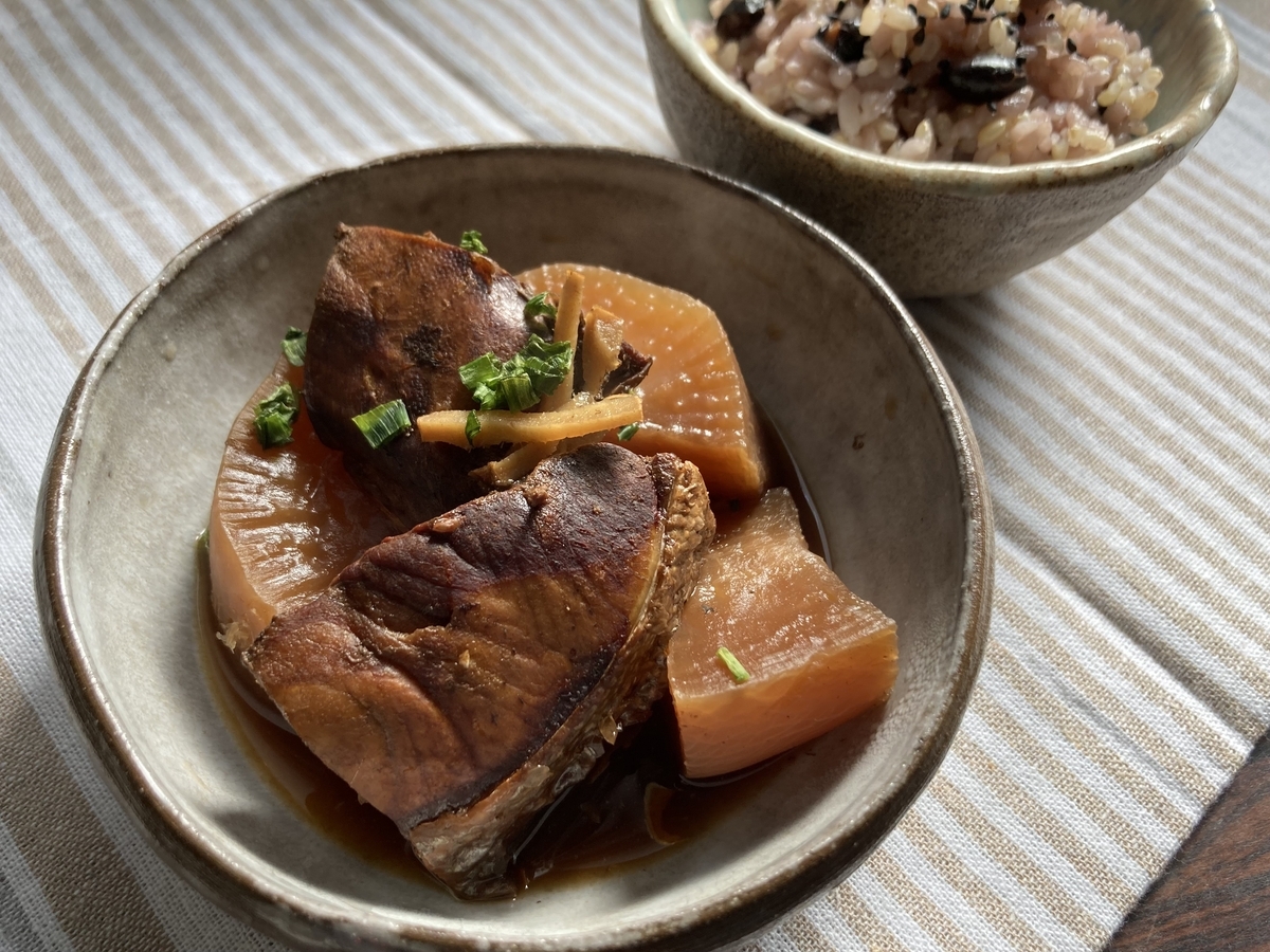 気晴らしに作ったぶり大根、味覚のないままつまんでいます。